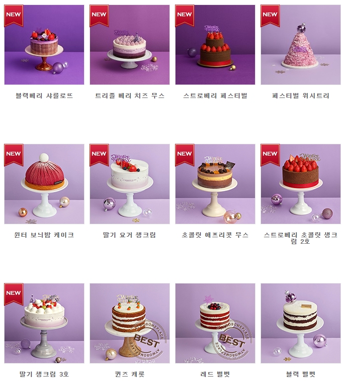 호불호가 그리 강하지 않은 초콜릿과 딸기, 치즈가 섞인 케이크 들이 주류이고