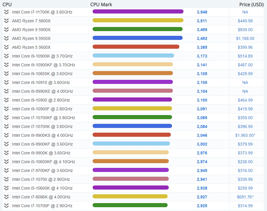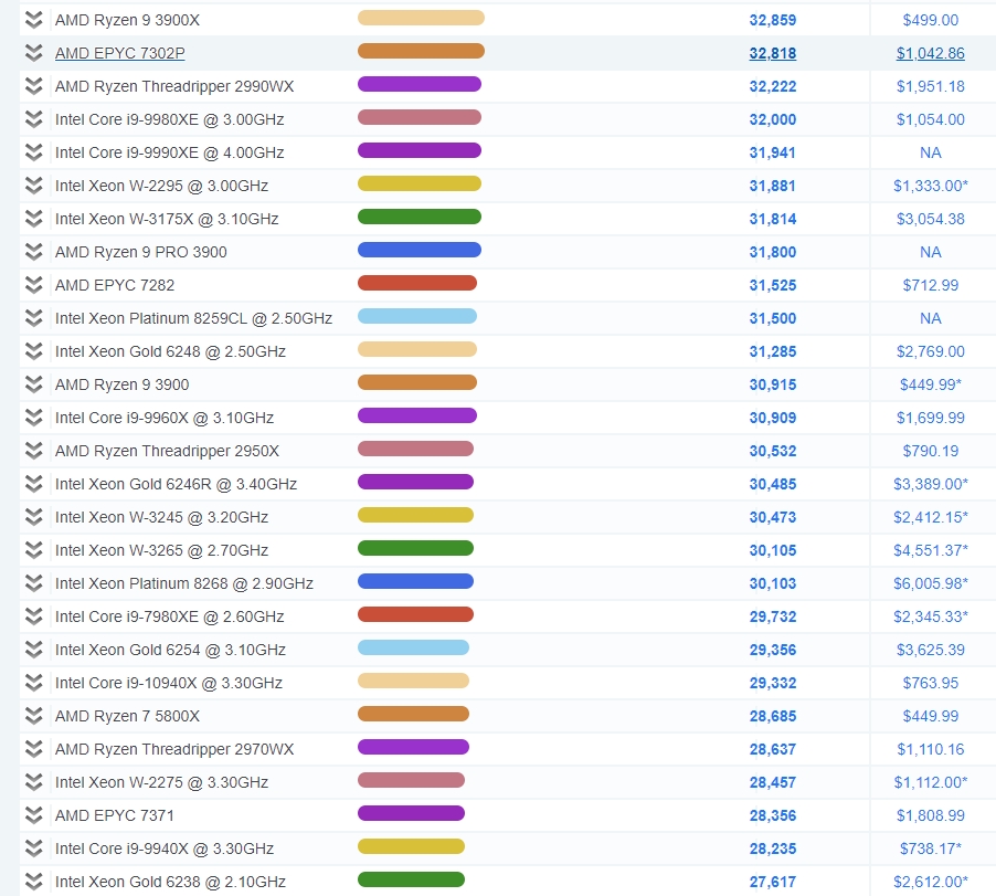 그래서인지 성능순위에서도 AMD가 상위권에 많이 보였습니다.