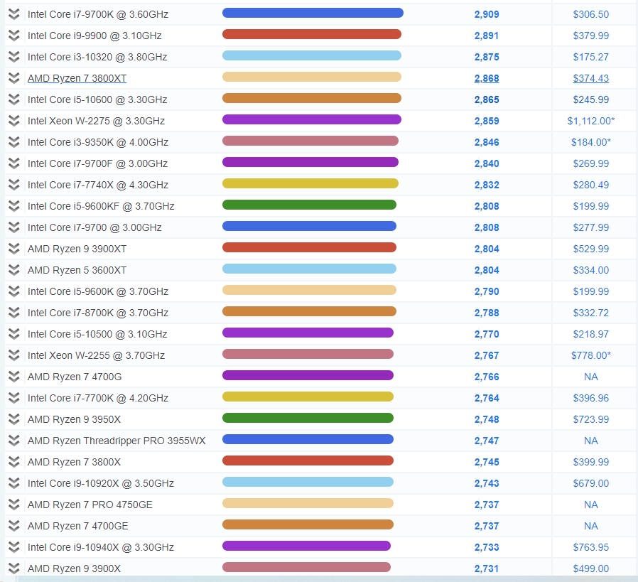아무튼 이 중 싱글쓰레드에 대한 성능순위부터 보겠습니다.